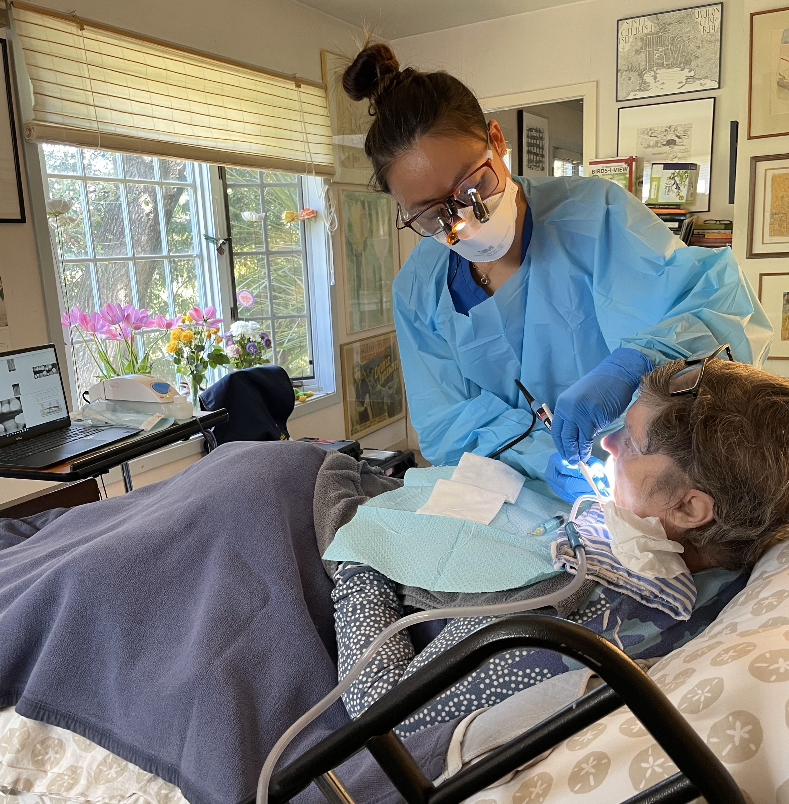 Patients, caregivers, or referring healthcare professionals can request a house call through Itani Dental’s website or by calling 415-685-0011. The initial in-home visit includes a comprehensive exam, consultation, X-rays (as needed), a cleaning (if applicable), and customized treatment recommendations.